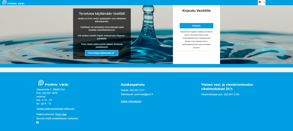 Porin Vedessä on käytössä Suomen Vesitieto Oy:n asiakastietojärjestelmä.