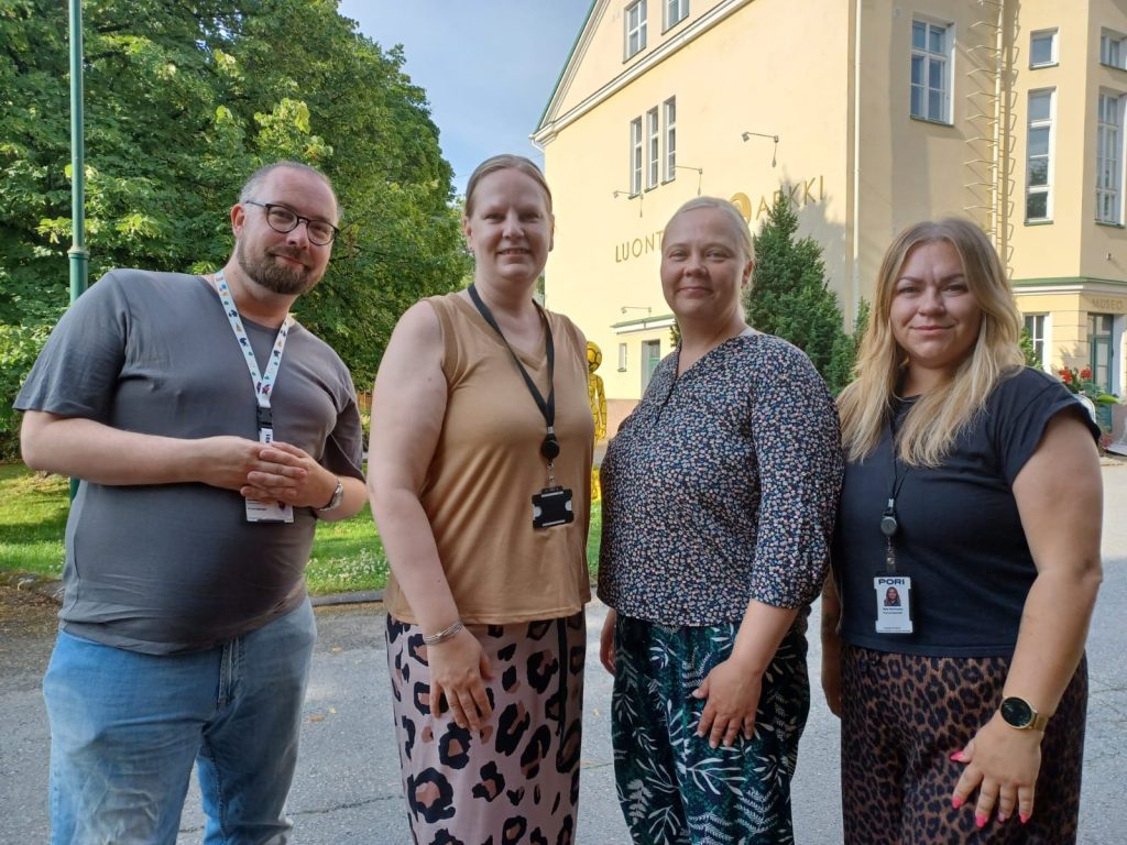 Photo: Integration specialists Juha-Matti Mäkinen, the Director Niina Hyytinen, Susanna Gonzalez, and Nea Kariluoto are some of the experts providing service on all things integration and international at the International House Pori.
