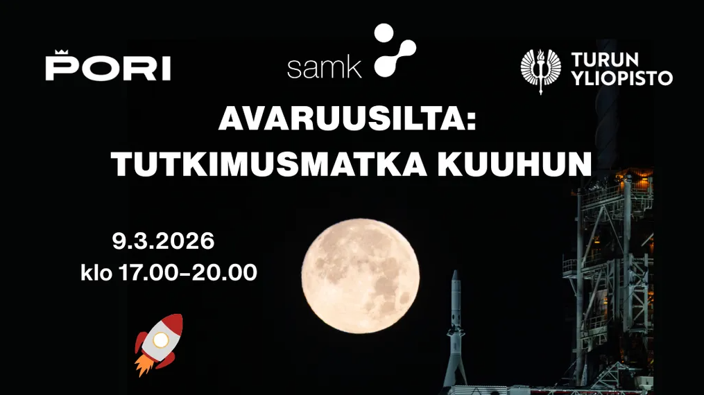Porissa päästään kurkistamaan avaruustutkimuksen maailmaan, kun Avaruusilta: Tutkimusmatka Kuuhun käynnistää Turun yliopiston, Satakunnan ammattikorkeakoulun ja Porin kaupungin yhteisen avaruusteemaisten tapahtumien sarjan, jossa yleisölle tarjotaan avaruusteemaista ohjelmaa kevään 2026 aikana. Ensimmäinen tilaisuus järjestetään SAMKilla 9. maaliskuuta klo 17 alkaen.