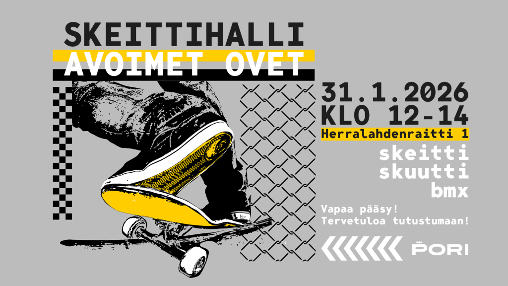 Viime marraskuussa uudelleen auenneessa Porin skeittihallissa vietetään avoimien ovien päivää lauantaina 31. tammikuuta kello 12–14. Erityisesti perheille, lapsille ja uusille kävijöille suunnatun päivän aikana pääsee testaamaan lajeja opastetusti. Skeittauksen lisäksi skeittihallissa pääsee myös skuuttaamaan ja BMX-pyöräilemään. Skeittihalli on keväällä mukana Harrastamisen Porin mallin harrastustarjonnassa.