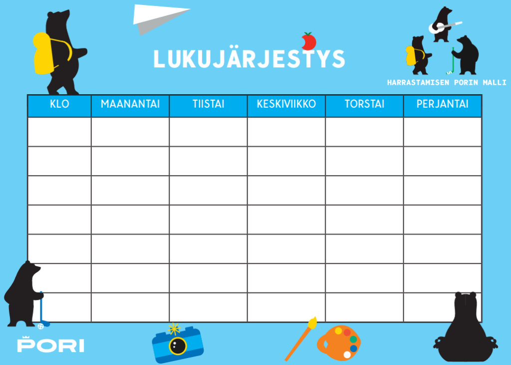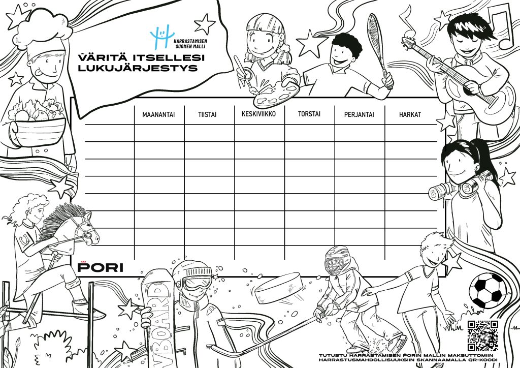 Täältä voit ladata ja tulostaa itsellesi Harrastamisen Porin mallin lukujärjestykset.